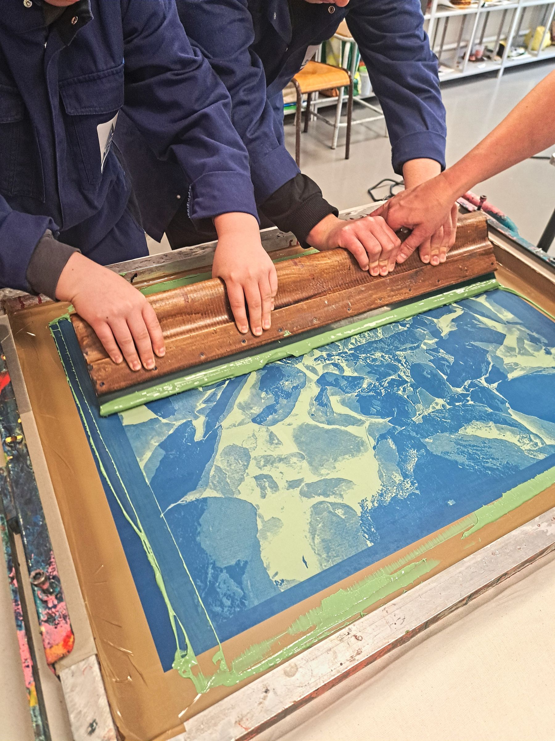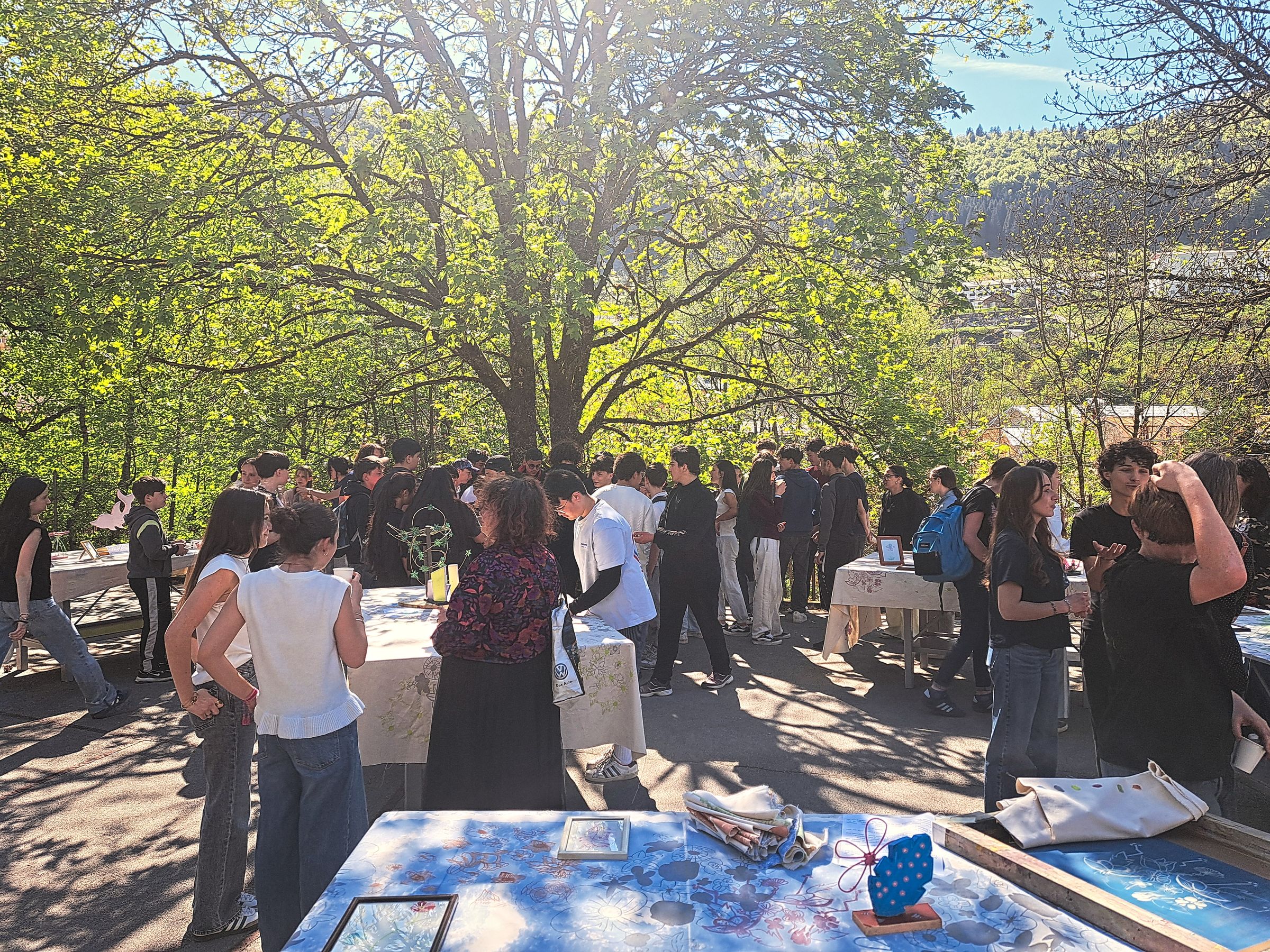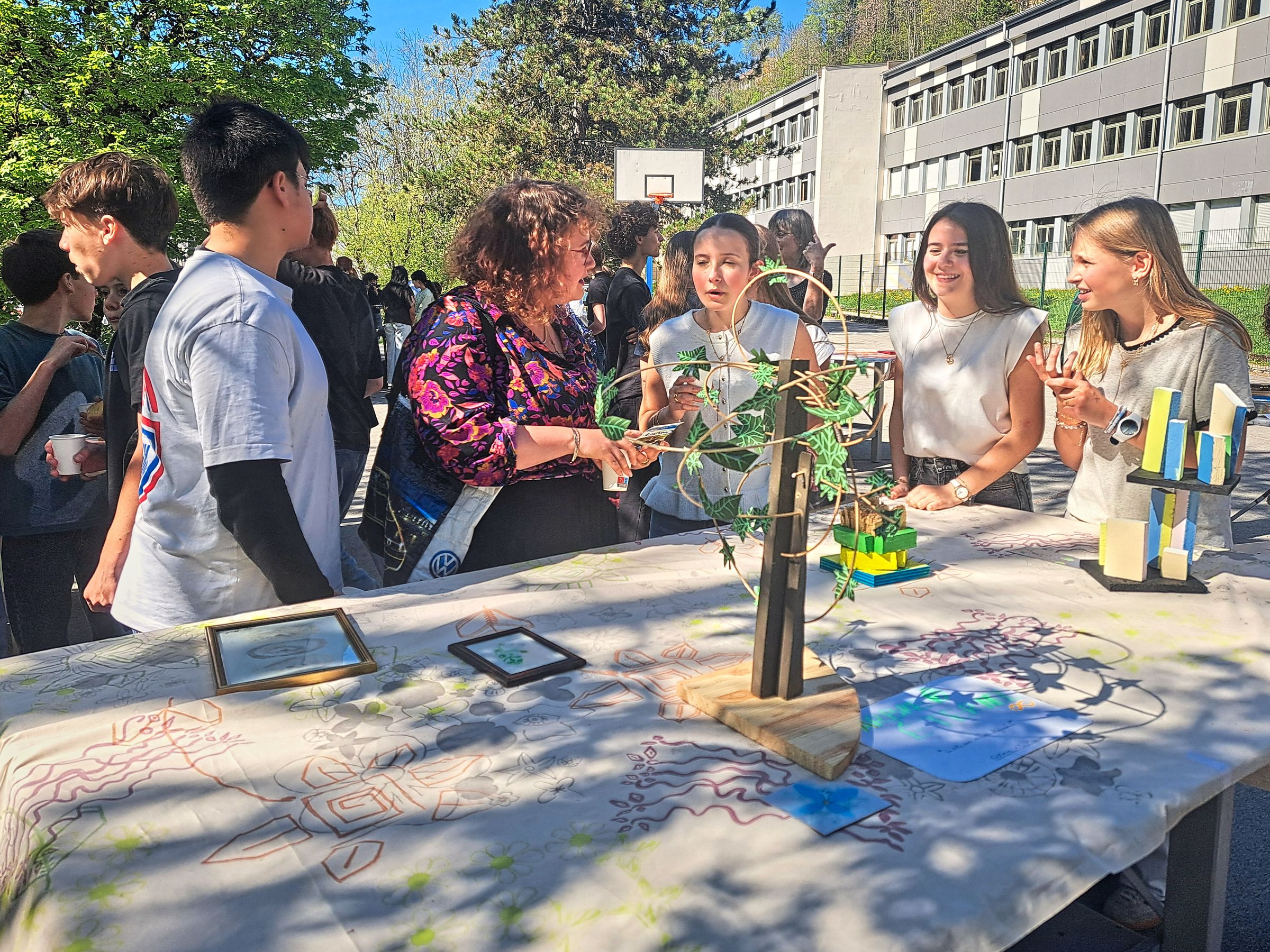 Cette semaine, les élèves de l’option arts plastiques du lycée Victor Bérard et des élèves de troisième du collège PH Cazeaux ont collaboré autour d’un projet artistique commun dans le cadre des cordées de la réussite. Ils ont travaillé sur le thème des motifs naturels. Après avoir été initiés à la technique de la gravure en taille douce avec l’artiste Marcelline Bertin, ils ont réalisé une sculpture colorée en bois. Enfin, l’atelier de sérigraphie de la Fraternelle de St Claude leur a fait réaliser des impressions sur tissu, destinées à être exposées sur la Terrasse des éco-délégués du lycée. Brin de cordée Artistique 2026